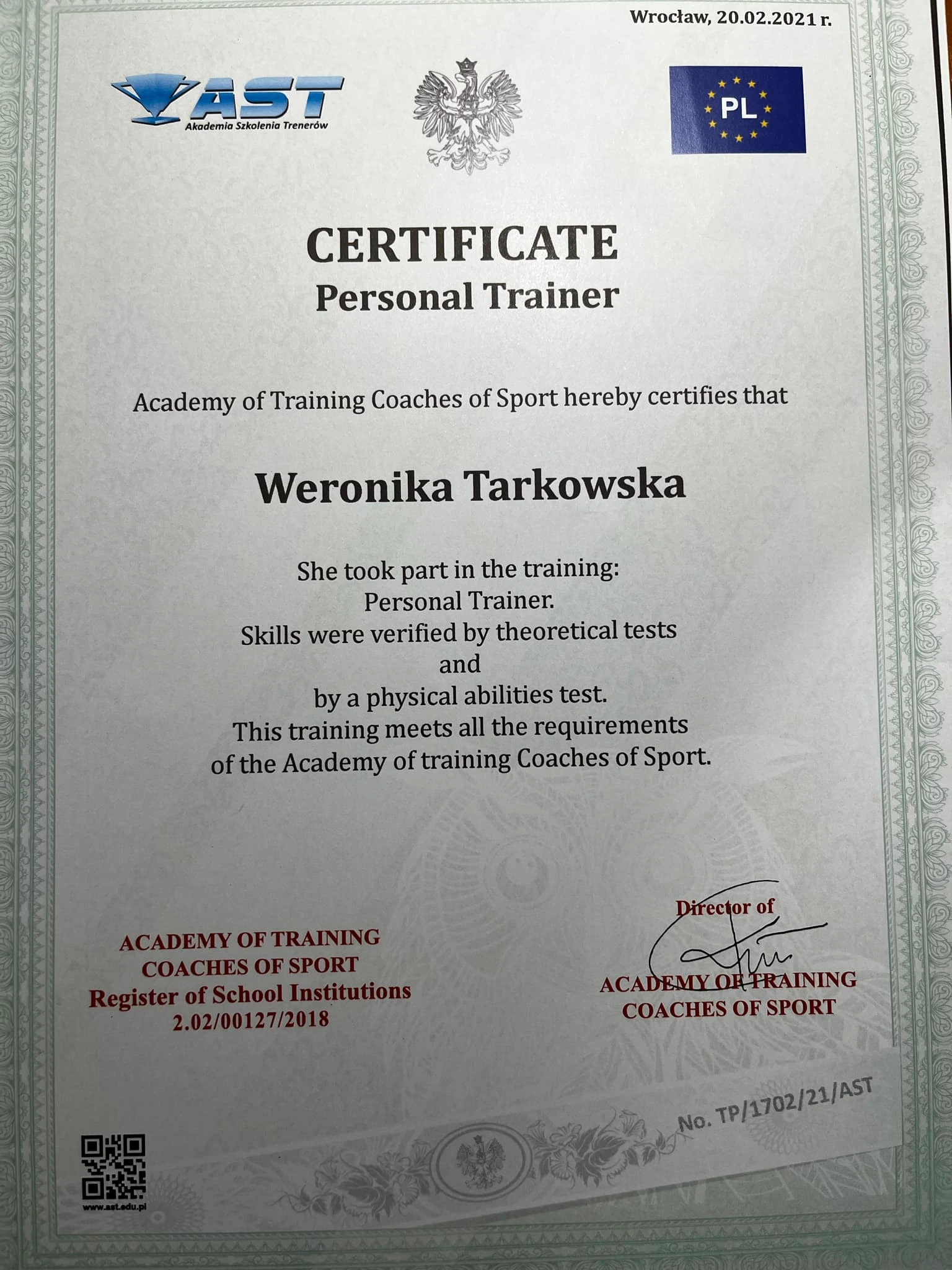 Cześć. Nazywam się Weronika, jestem certyfikowanym trenerem.